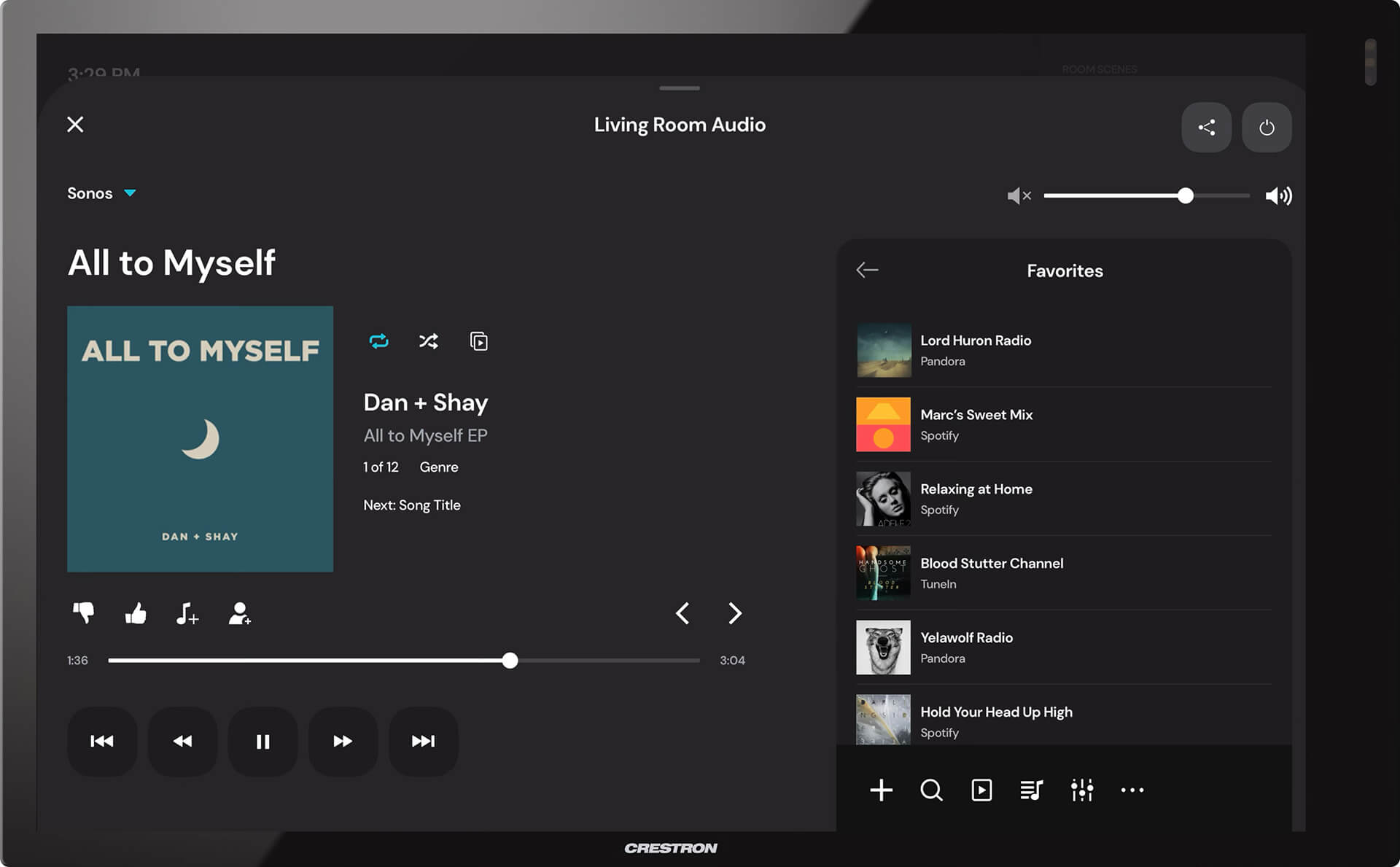 无需多个遥控器。通过一个直观的 Crestron Home 界面,即可掌控全屋娱乐内容流转,化繁为简。